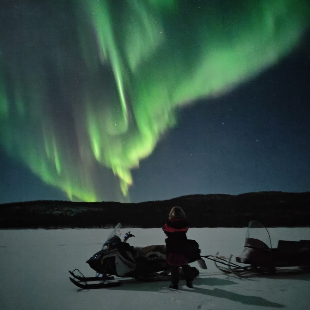 We will pick you up from your accommodation or another agreed location and take you to our office, where you will be provided with snowmobile gear. From there, we will continue by snowmobile to the edge of the Hammastunturi Wilderness Area. You’ll sit comfortably in a sleigh pulled by the snowmobile, enjoying the scenery and keeping an eye on the sky for northern lights. Along the way, we’ll stop to grill sausages and enjoy hot drinks on an open fire in the untouched wilderness. After the activity, we’ll transport you back to your pickup location.